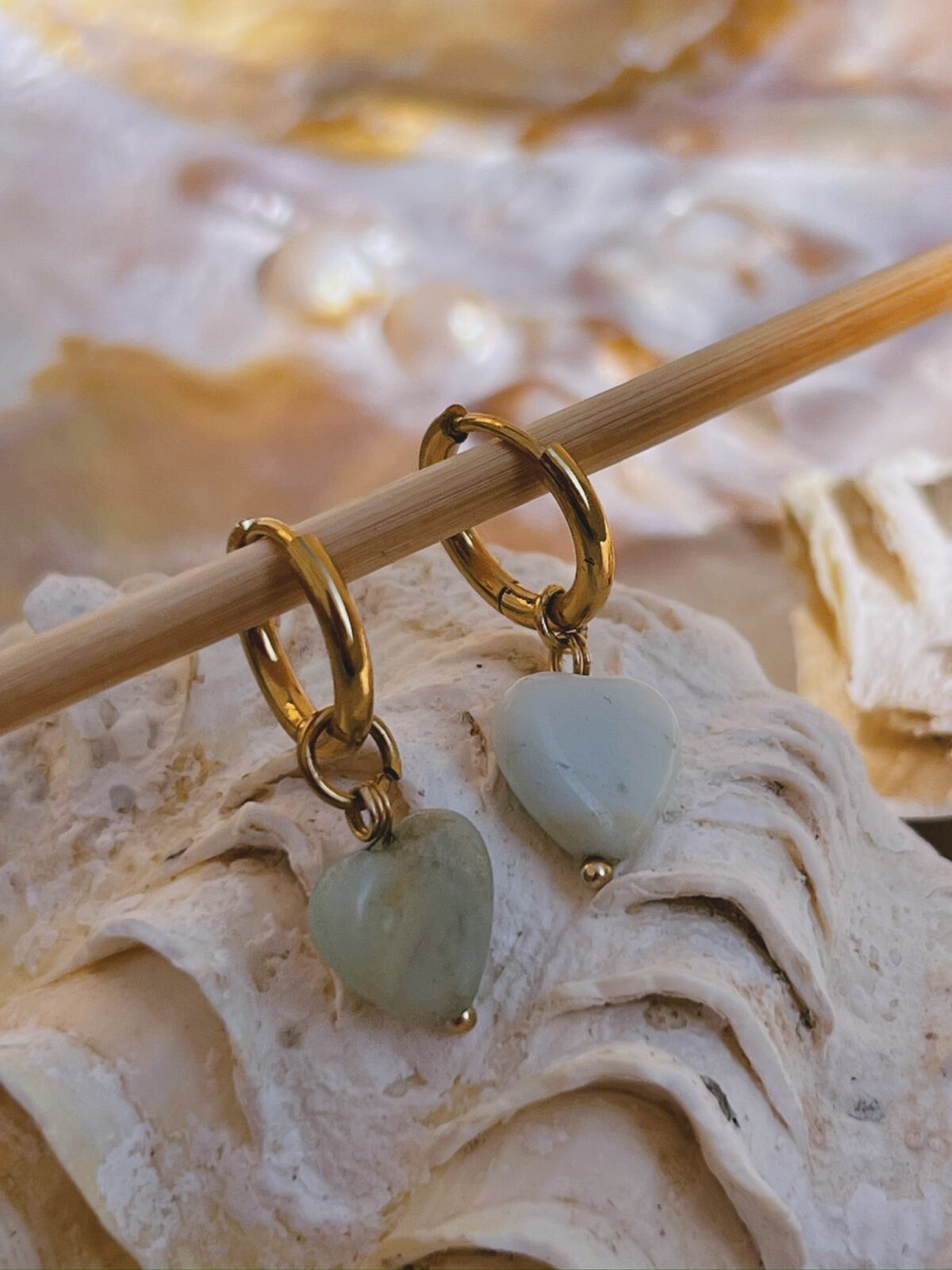 Embrace timeless elegance with Lovia, a pair of exquisite heart-shaped Aquamarine earrings that capture the essence of romance and sophistication. Each earring features lustrous aquamarine stone delicately crafted into a heart shape, reflecting purity and love in every shimmer.