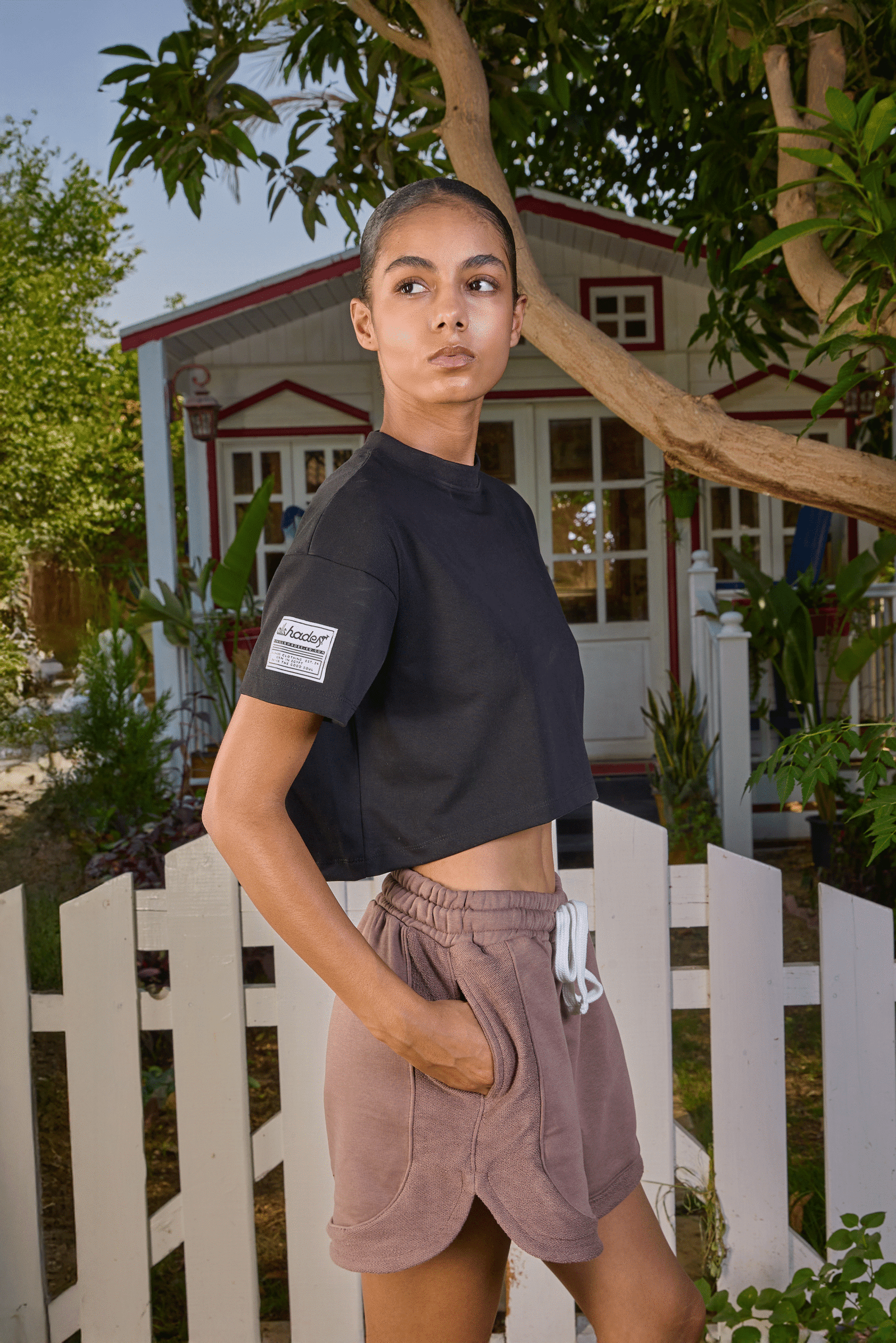Step into effortless confidence with our Cropped Black T-Shirt. Cut with a modern edge, this piece is slightly shorter at the front for a flattering fit and longer at the back for added ease. On the sleeve, our signature Allshades patch brings authenticity, while the embroidered back detail, “Vibes Over Drama”, says it all. Made from 100% premium cotton, it’s soft, breathable, and made to move with you.