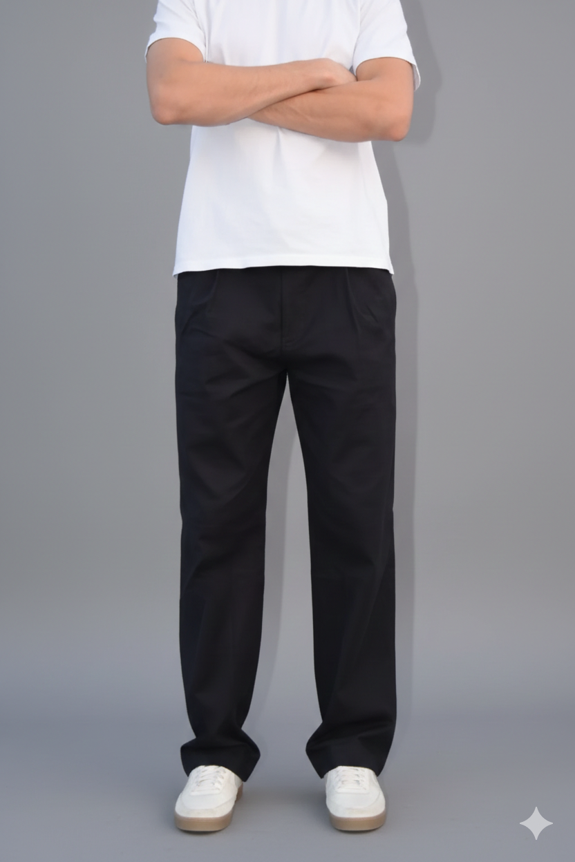 BLACK PLEATED GABARDINE PANTS