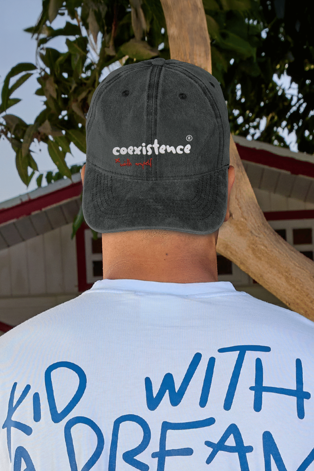 Our stone-washed black cap features a finely embroidered text that reads “Coexistence with myself” emphasizing acceptance and inner peace. More than just an accessory, this cap is a reminder to stay true to your path, no matter where it leads.