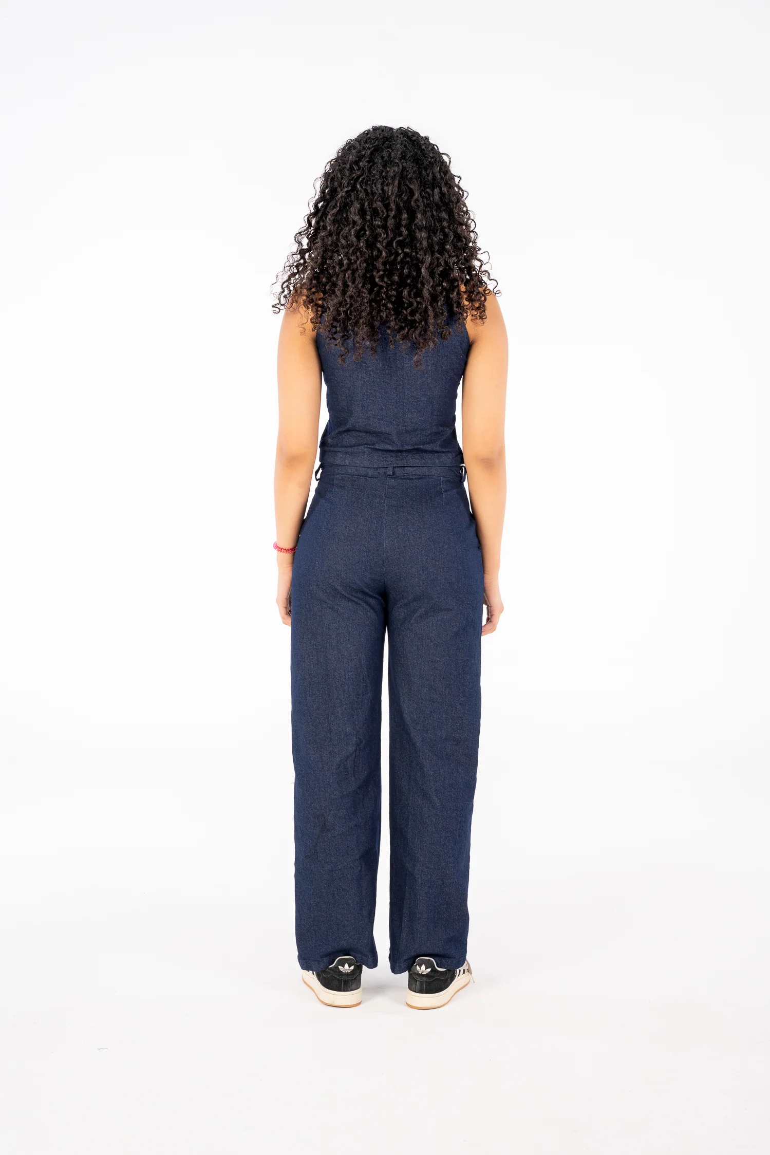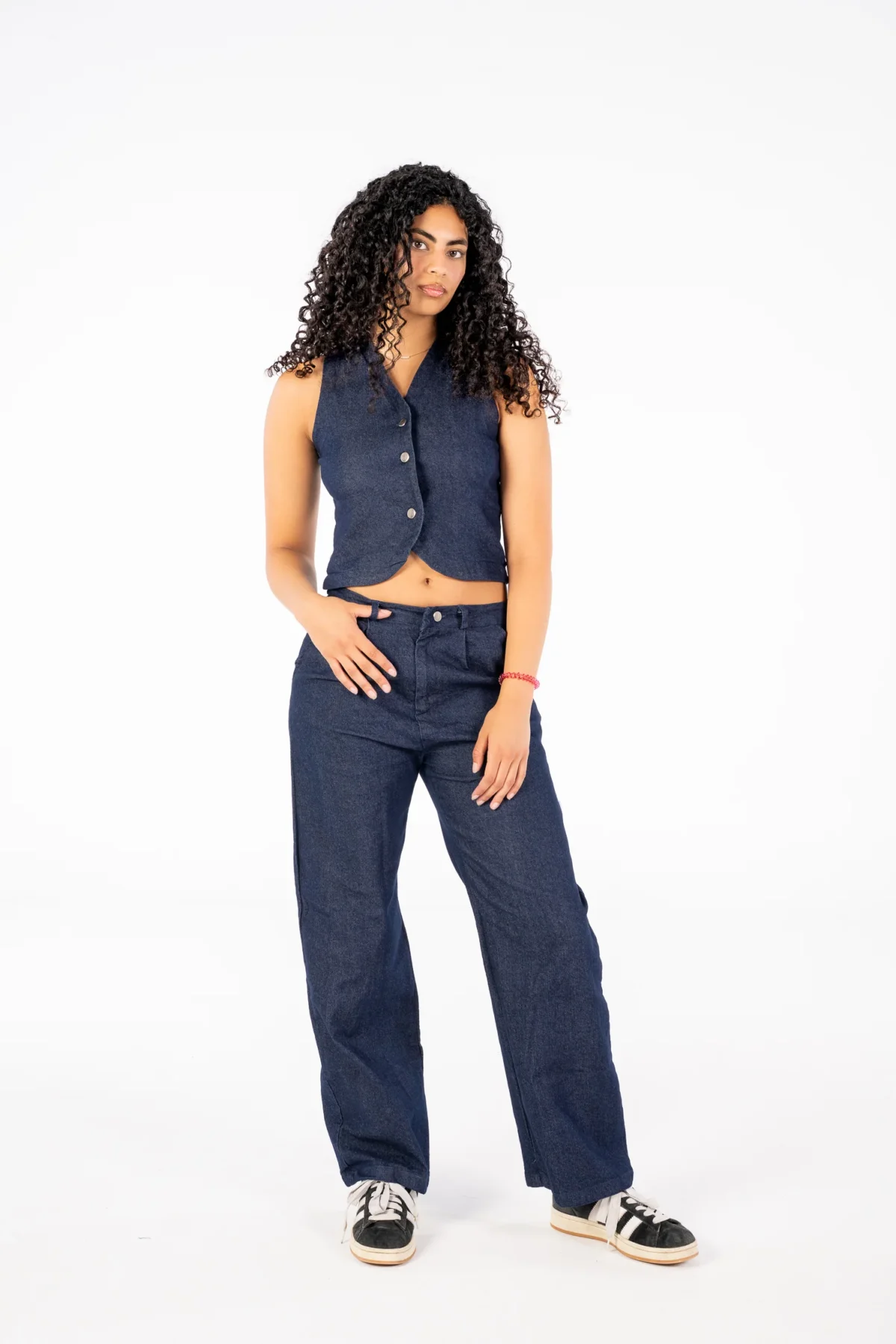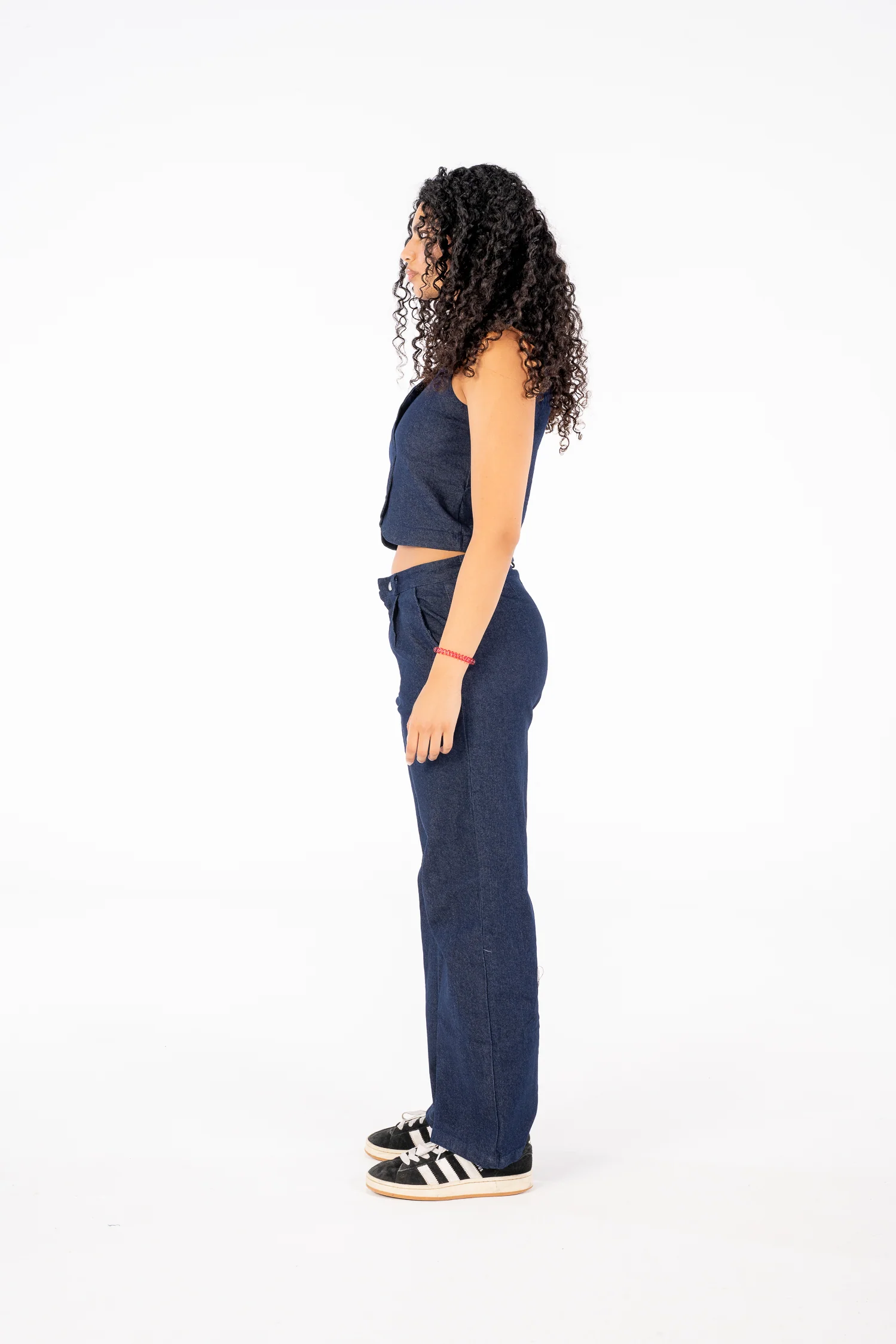 Navy blue straight fit jeans. Model is 1.82 meters tall wearing size Medium.