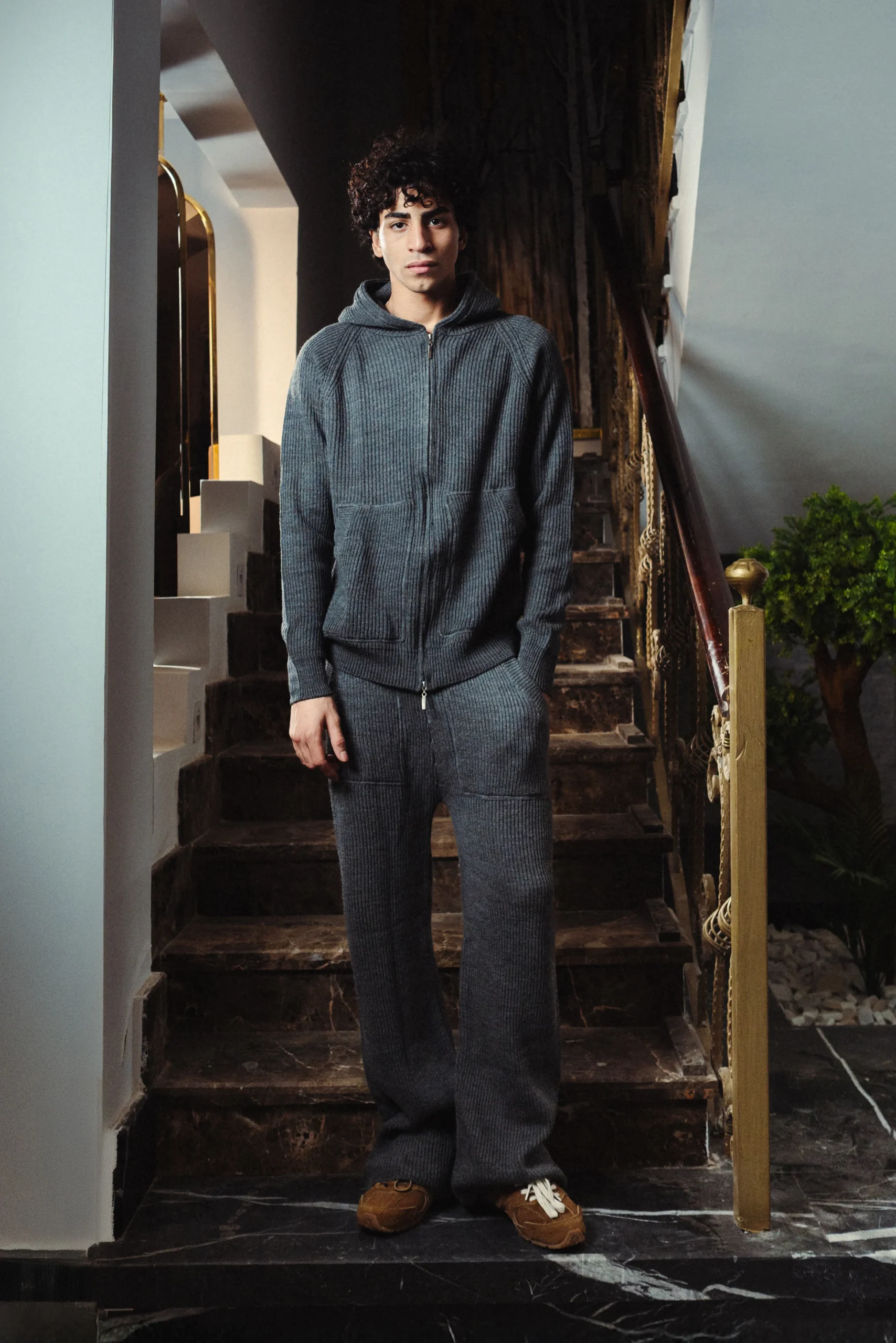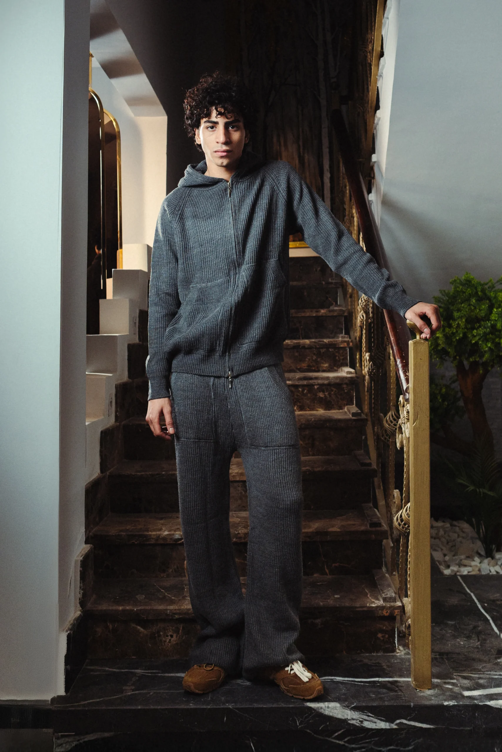 Designed in a refined storm dust gray tone, this Full Double Zip Knitted Set is crafted from premium acrylic knit for a soft feel and lasting structure. The set features a full double-zip hoodie paired with pants detailed with a hidden waist rope, two side pockets, and two back pockets for a clean, functional finish. Made using premium fabrics with professional manufacturing and packaging, this set reflects a modern balance of comfort, quality, and thoughtful design.