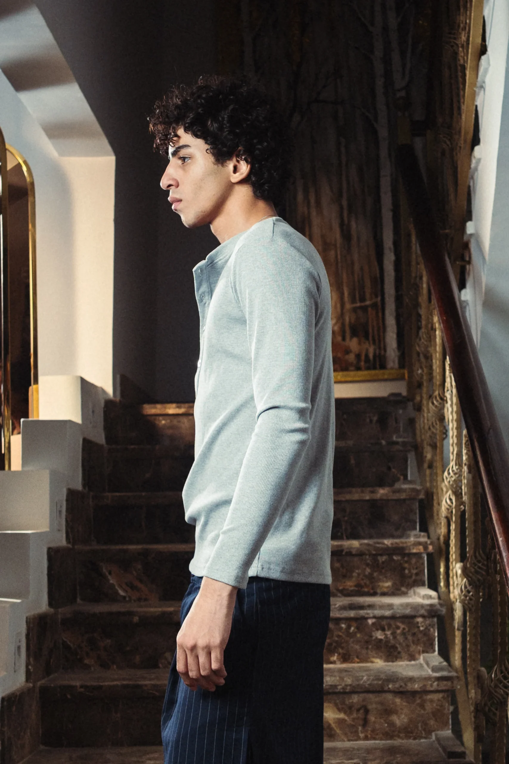 Designed in a clean Light Heather Gray tone, this Henley Shirt is crafted from fine rib cotton jersey with a high-stretch blend of 90% cotton and 10% elastane for a smooth, body-contouring fit. Finished with a long, buttoned Henley collar extending below chest level, it delivers a sharp, refined silhouette. Also available in Mystic Navy Blue, Black, White, and Dark Heather Gray, this piece is produced using premium fabrics with professional manufacturing and meticulous packaging.