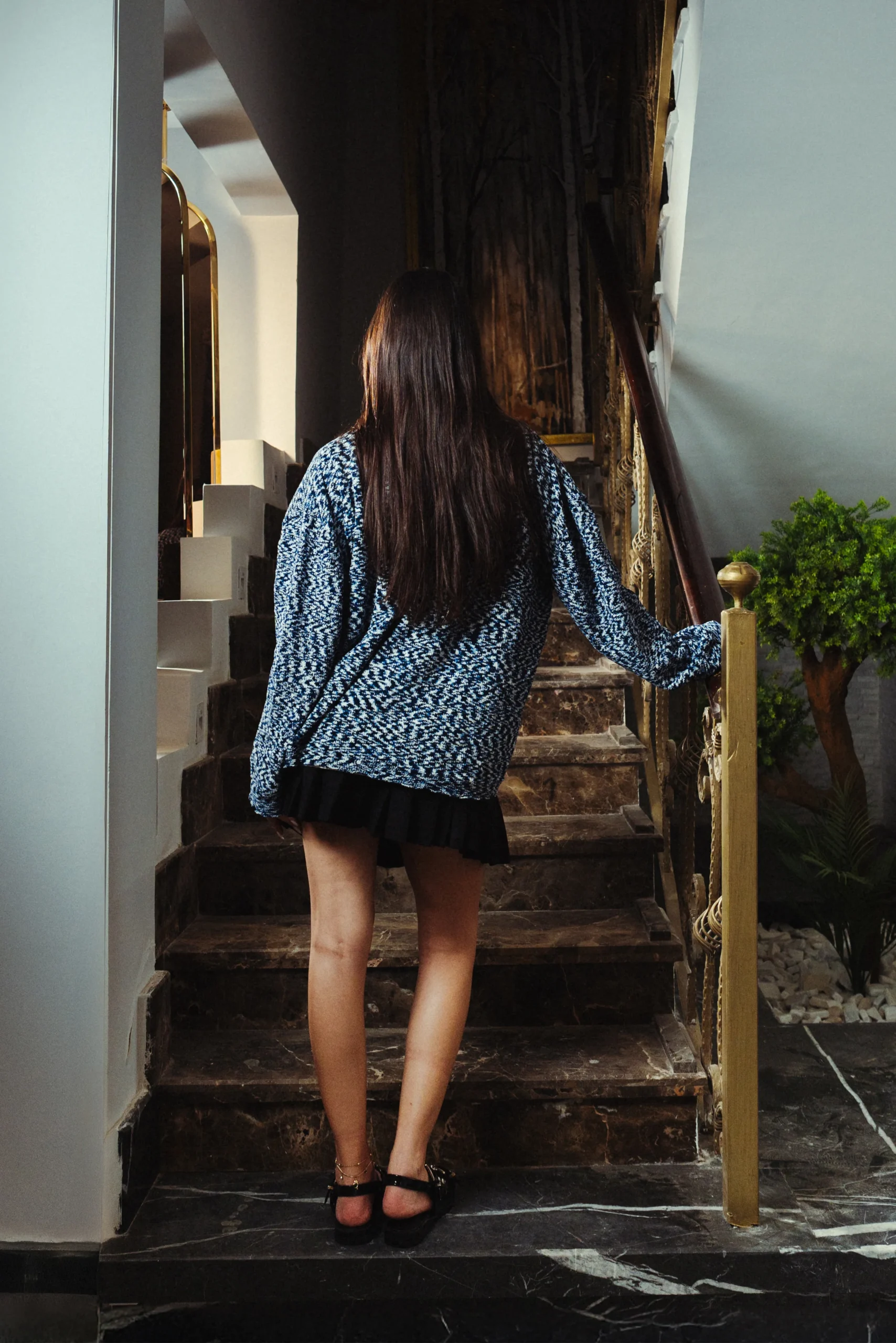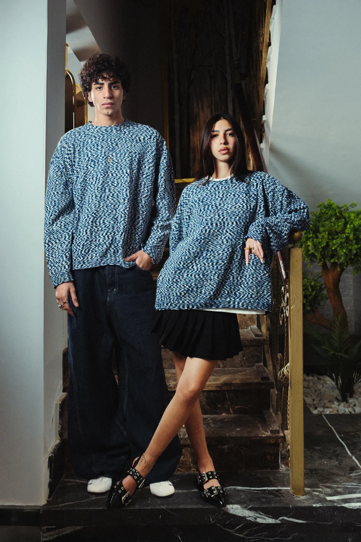 Designed in a deep Navy Marl finish, this Velvet Knitted Crewneck is crafted from soft brushed acrylic knit for a plush, comfortable feel. Knitted using brushed yarns with non-uniform thickness, it features a textured surface and a marled 3 colored yarns, navy blue, light blue and white, enhancing the depth of the design. Produced using premium fabrics with professional manufacturing and meticulous packaging, this piece reflects modern knitwear with a refined edge.