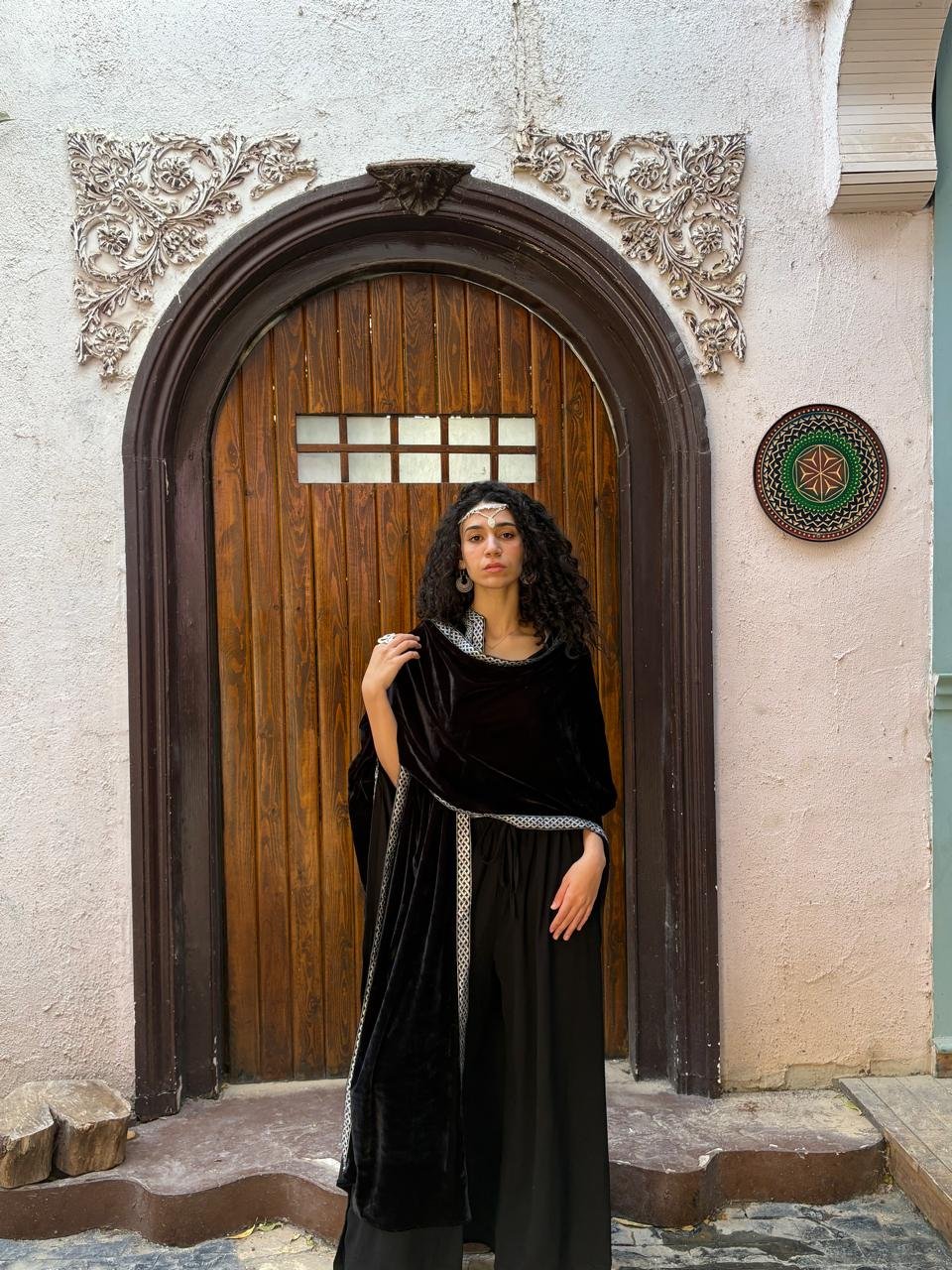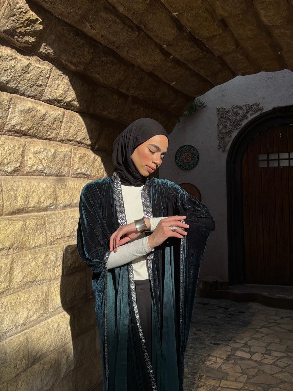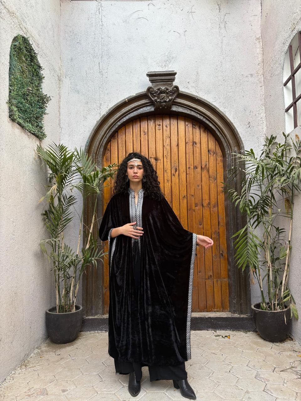 A regal velvet kaftan designed with a royal embroidered border for an elevated, timeless look. Versatile in style, it can be worn traditionally or draped as a scarf kaftan.
